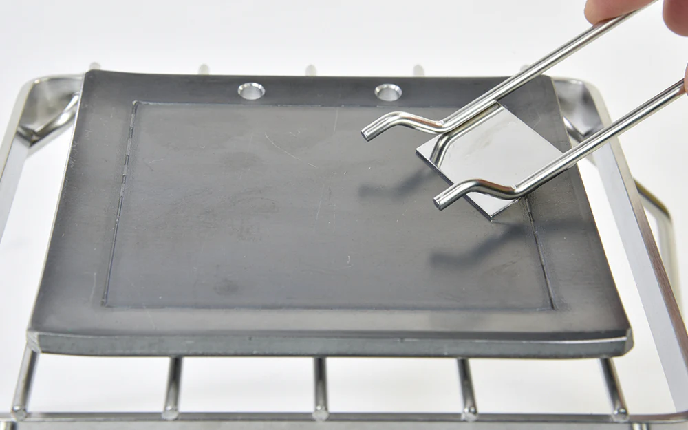 1. ล้างแผ่นเหล็กด้วยผงซักฟอกที่เป็นกลาง และเช็ดความชื้นออก