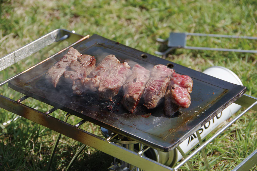 แผ่นเหล็กหนาพิเศษ 6mm พร้อมคุณสมบัติในการกักเก็บความร้อนสูง ช่วยให้เนื้อสัตว์หรือผักอยู่ในสภาพที่ดีที่สุดเมื่อปรุงสุก เมื่อแผ่นเหล็กร้อนเพียงพอแล้ว สามารถปรุงอาหารด้วยอุณหภูมิปานกลางได้แม้ใช้ไฟอ่อน และจะได้เนื้อ และผักที่กรอบ