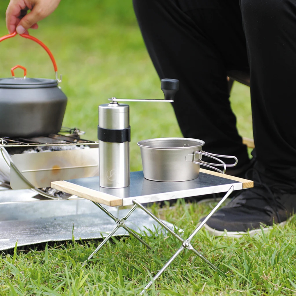 ตามคําว่า "ทําใจให้สบาย" และ "ผ่อนคลาย" เป็นโต๊ะข้างชิลล์ขนาดเล็กที่เหมาะที่จะวางไว้ด้านข้างเมื่อคุณกําลังผ่อนคลาย สามารถพับเก็บได้กะทัดรัดและพกพาได้ ง่าย และแผ่นด้านบนสแตนเลสที่ทนทานสามารถใช้กับกองไฟหรือวางบนเตาแอลกอฮอล์ได้!