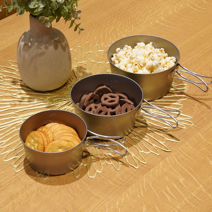 เนื่องจากหูจับสามารถพับเก็บได้ จึงสามารถวางซ้อนกันได้ ไม่เพียงแต่ใช้บนโต๊ะอาหารเท่านั้น แต่ยังมี 5ขนาด ตั้งแต่ 250 – 850ml (BM-425 ~ BM-428, BM-339) ที่สามารถใช้ทําอาหารได้อย่างเรียบร้อย